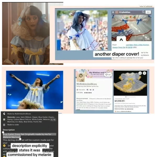 numerous observers and fans have pointed out that melanie martinez acquired dresses from an ageplay webstore, incorporating this distinctive style into her wardrobe during the crybaby tour, various concert performances, and even in one of her music videos. these garments reflect a childlike, doll-inspired aesthetic that aligns with the themes present in much of her work from that era.moreover, several of these dresses were not simply purchased off the rack but were custom commissioned by melanie herself. notable features, such as diaper covers, were intentionally included as part of the design, demonstrating that she specifically requested these unconventional elements. this level of customization suggests a deliberate choice to embrace and incorporate ageplay fashion into her public image and artistic expression.
