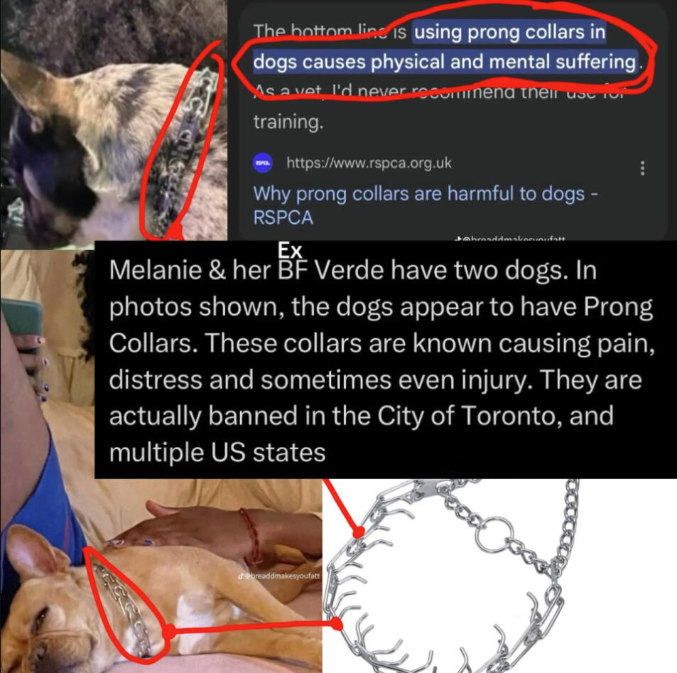 melanie martinez has also faced criticism regarding her treatment of her dogs, particularly due to the use of prong collars. for those unfamiliar, a prong collar is made of interlocking metal links, each featuring a set of prongs that press into a dog’s neck when tension is applied. although some argue that these collars are intended to correct behavior through mild discomfort, many animal welfare advocates strongly oppose their use, as they can cause both physical harm and emotional distress to the animal.concerns were heightened following the early death of melanie’s dog, mouse. a professional comment circulating on reddit suggested that the use of prong collars, combined with taking mouse on hikes in the intense los angeles heat, may have contributed to the dog’s declining health. this concern is especially relevant given that french bulldogs—like mouse—are a brachycephalic breed known for respiratory and heat sensitivity, with recommended walking durations typically limited to just 10 to 20 minutes. the combination of harsh training tools and environmental stress may have placed significant strain on the dog, raising ethical concerns among fans and animal welfare supporters.
